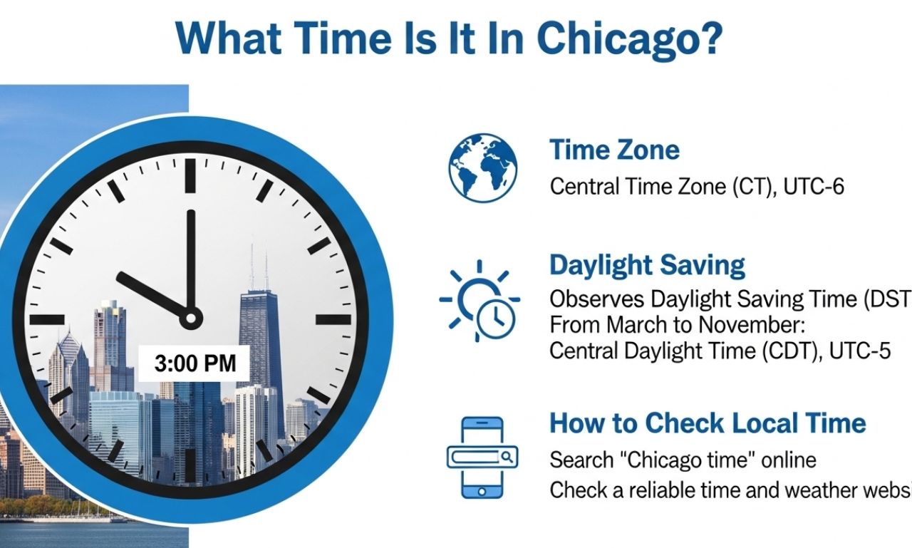 If you’ve ever asked, “What time is it in Chicago?”, you’re tapping into an important question that affects travel plans, business meetings, or just connecting with friends and family. Chicago, Illinois — known as the Windy City — follows Central Time, one of the major time zones in the United States.